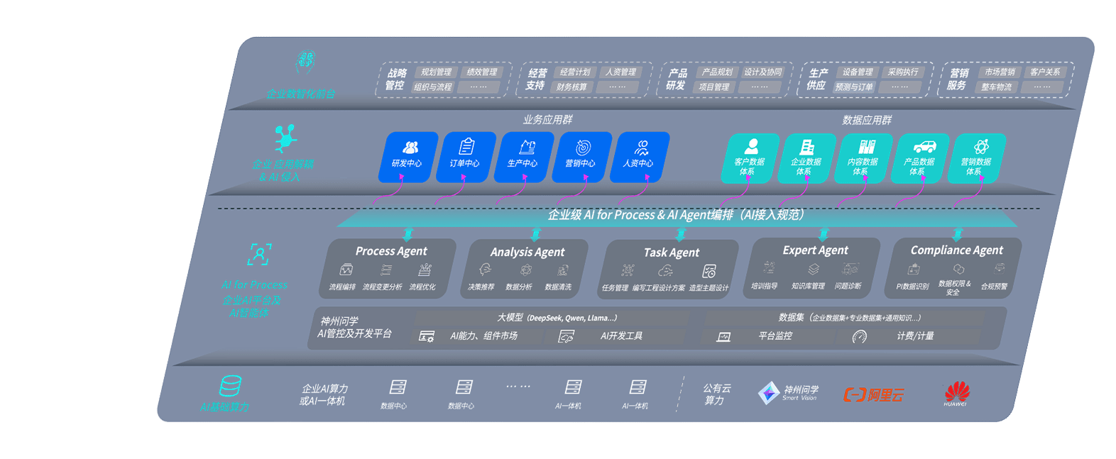 77779193永利官网问学智车解决方案是一套基于AI技术的汽车行业智能化系统,,覆盖从底层算力到顶层AI应用的全栈方案。。方案由算力层、、模型层和应用层组成:算力层,,,,方案支持多种一体机配置,,,具备云端灵活部署、、多云适配以及动态优化计算资源的能力;模型层,,,77779193永利官网问学平台版提供了企业级AI应用一站式构建与管理平台,,,支持基于后训练强化技术的汽车企业专属模型的训练、、、评测和运营;应用层,,,,77779193永利官网问学DeepSeek版提供包括超级员工、、、智能招采、、智能营销、、、、智能客服、、AI for BI等一系列解决方案,,,可助力汽车行业实现数字化转型,,,让管理更智能、、、响应更敏捷。。